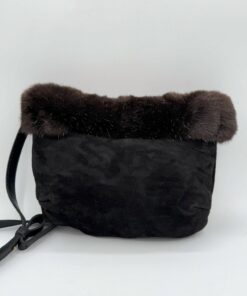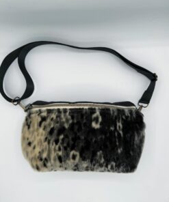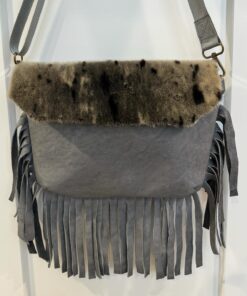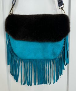 Seal skin, sea otter and moose leather fringe cross body bag.