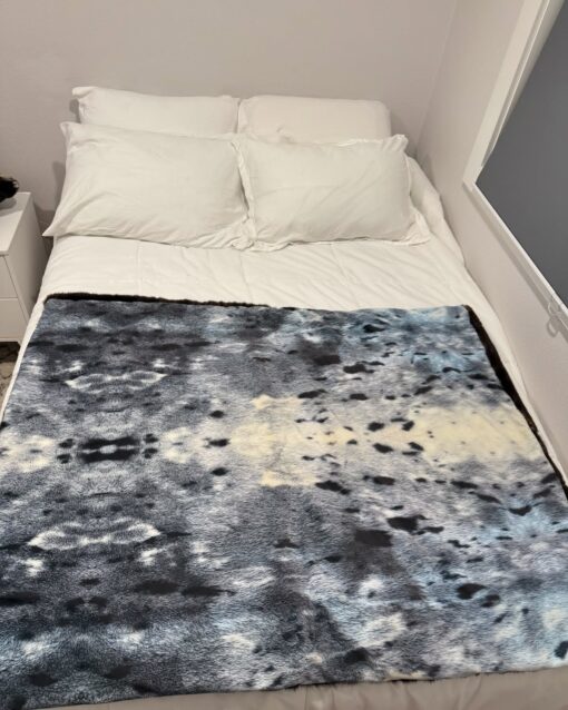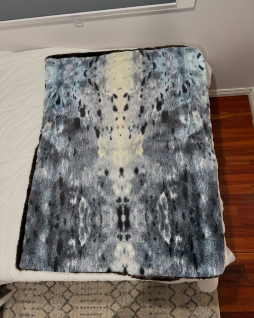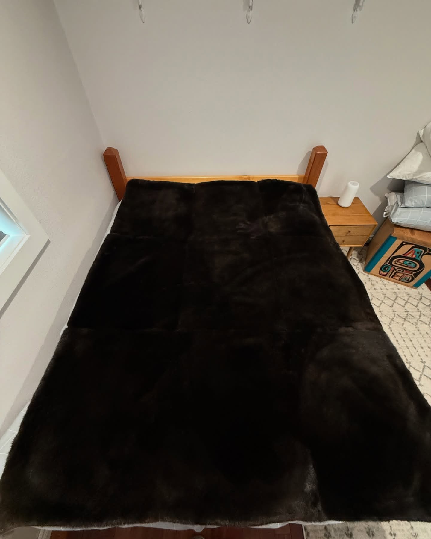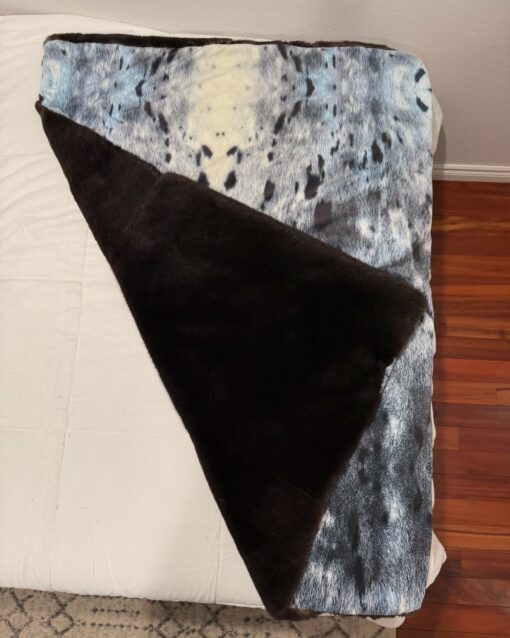 ✨This Sea Otter Fur Blanket measures 53” x 40” and is made from four large sea otter pelts, featuring a soft custom-printed velvet backing with a seal skin pattern.